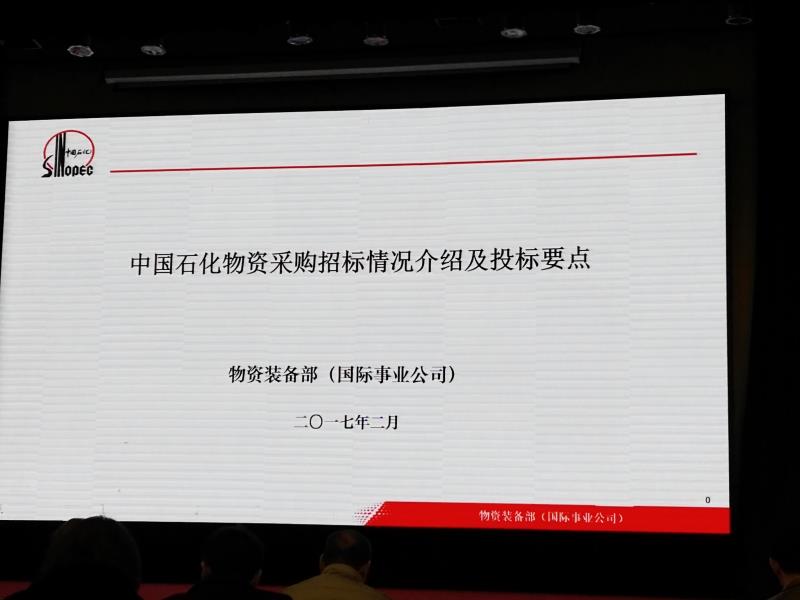 2017年2月16日中國石油化工物資采購交流會山東煉化專場在淄博如期召開,我公司應邀參加。兩天的會議安排,包括了招投標專項培訓和專場交流會。專場培訓詳細講解了中國石化物資供應資源管理、招標評標管理、招投標要點等。